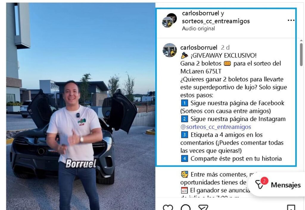 Carlos Borruel Jr., empresario chihuahuense conocido por su estilo de vida ligado al lujo automotriz, sorprendió al anunciar la rifa